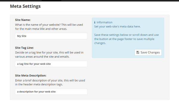 From within the general settings section, the web-site administrator can adjust the following meta setting options.