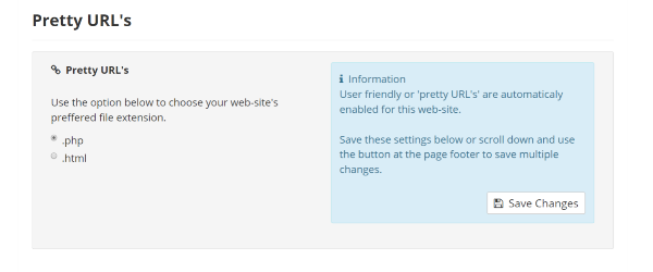 Our PHP scripts use pretty url's by default, choose the file extension type