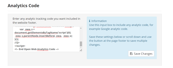 From within the general settings section, the web-site administrator can adjust the following analytics code setting options.